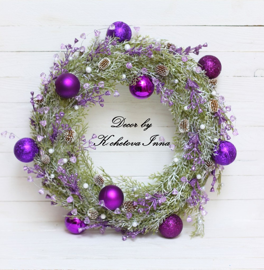 Декоративный венок в лилово-серебряном сочетании Панель идей 10 лет назад Декоративный венок в лилово-серебряном сочетании.