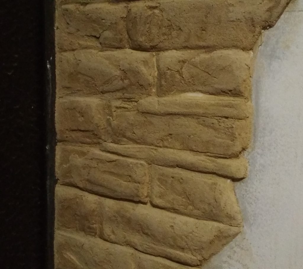 Нанести шпателем опилочную массу в один ряд и придать мастихином нужную форму. Таким же способом укладываются все последующие ряды. Когда часть стены будет заполнена основой из искусственных камней, сразу на них местами наносится дополнительный объем. Выделяются трещинки и другие неровности. Все делать можно мастихином, кисточкой, губкой или просто пальцами.  Вариантом, как придать форму множество, и только практика покажет, какой вам больше по душе.