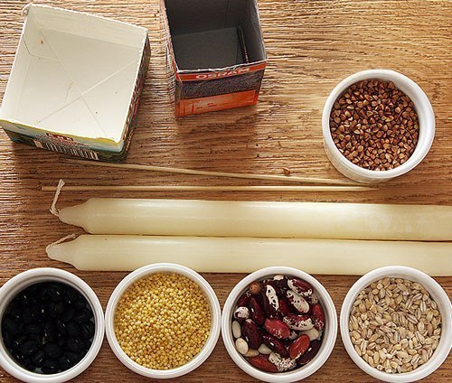 — белые восковые свечи;