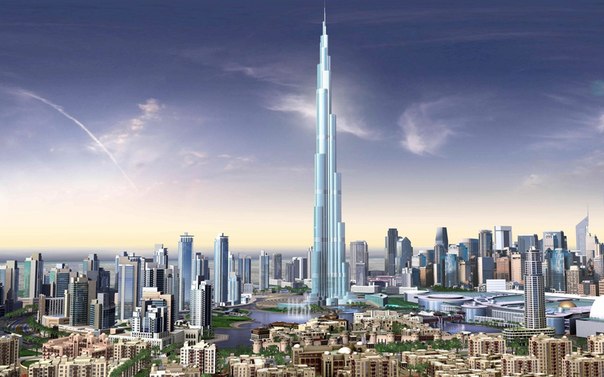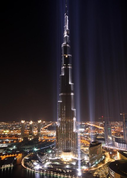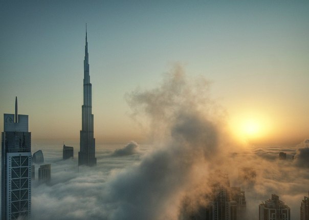 Первая фотография сделана с небоскрёба «Бурдж-Хали́фа» высотой 828 метров, являющегося самым высоким сооружением в мире.