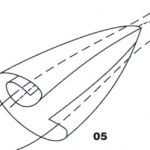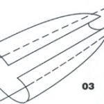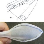 На схеме в разрезе подогнутый таким образом срез напоминает виток раковины (рис. 05). Подшивание подогнутого края следует выполнять ручной потайной строчкой справа налево. Выполнить прокол иглой внутри «канта» и вывести иглу между основной деталью и подогнутым «кантом».