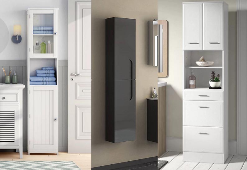 Напольные пеналы для ванны. Представляют собой высокие и узкие шкафы для хранения банных принадлежностей. Очень удобны будут для хранения банных халатов. Стандартный размер это 170-180 см. в высоту и 30-40 см. в ширину. Бывают очень высокие конструкции, но они неудобны в использовании, так как добраться до верхних полок проблематично. Перед покупкой шкафа-пенала для ванной нужно определиться, что в нем будет храниться, исходя из этого делать выбор.