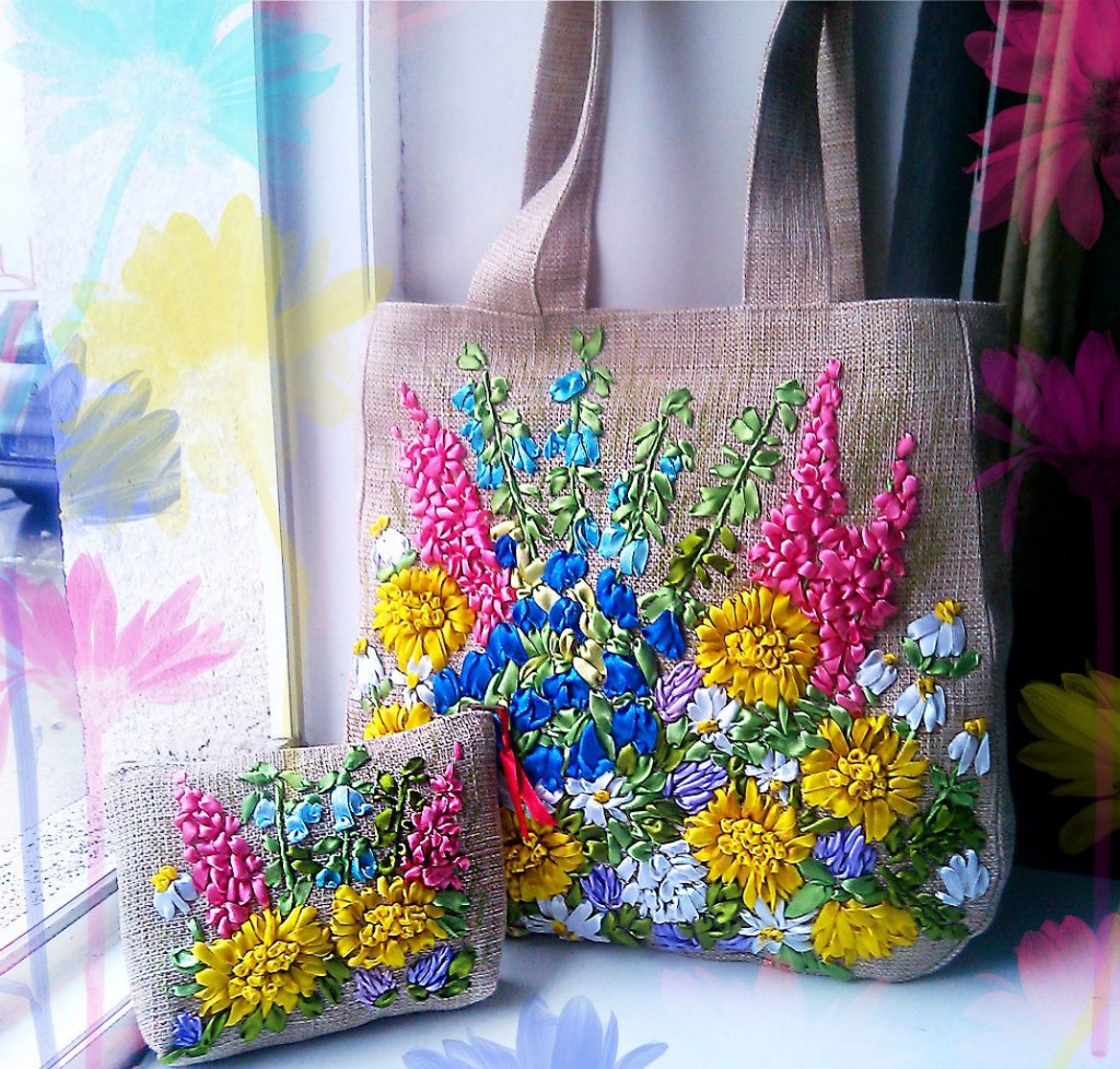 Вышитая сумочка и кошелек из атласных лент Панель идей 10 лет назад Вышитая сумочка и кошелек из атласных лент